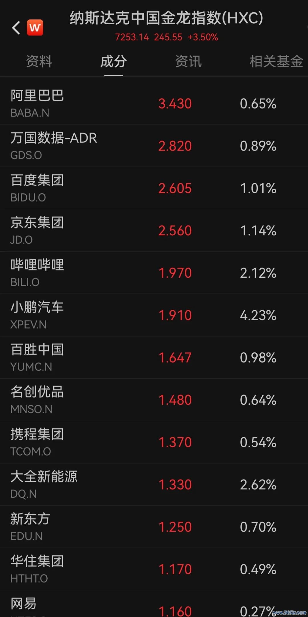 纳斯达克中国金龙指数涨3.50%,盘中涨幅一度超4%。