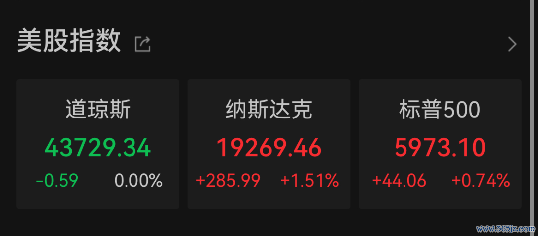 数据显示,截至周四收盘,道指持平报43729.34点,标普500指数涨0.74%报5973.1点,纳指涨1.51%报19269.46点。纳指首次收在19000点上方,标普500指数逼近6000点大关。